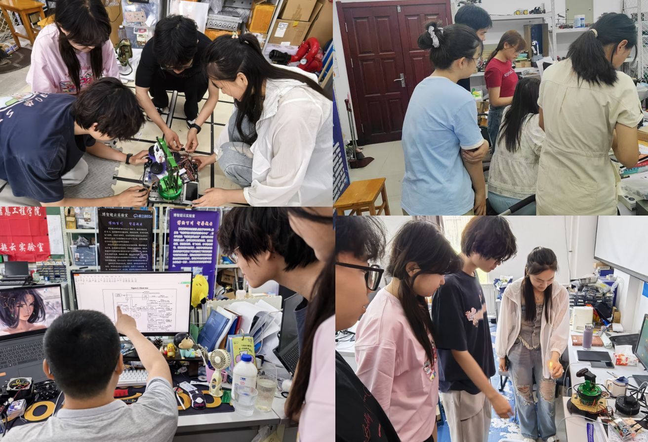 围绕电子设计大赛、全国大学生工程训练赛大学生科技赛事,根据学生特长与兴趣(硬件设计、软件编程、算法优化)分组;针对零基础学生开设竞赛通识课,重点讲解电赛大纲、命题规律及开发基础,确保全员掌握最小系统搭建传感器数据采集等必备技能。组织学生分组完成方案设计代码编写硬件调试报告撰写”等学习环节。实验室竞赛培训采用分层筛选、阶梯培养模式,多维度培养助力学生夯实专业根基、锤炼工程能力,切实提升创新素养与实践水平实验室持续优化学习体系,深化产教融合,为培养更多懂理论、会开发、能创新的高素质电子信息类人才贡献力量