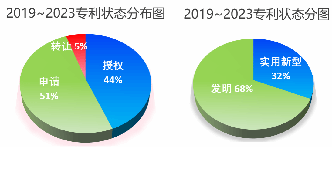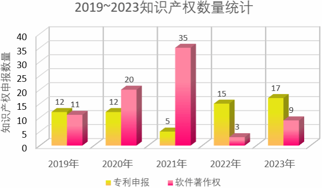 独播库 2019-2023年期间,共申请专利57项,授权29项,授权比例近50%,发明专利占比68%,反映出申请专利的新颖性、创造性和实用性大幅提高。特别是在成果转化方面取得突破,实现专利转化3项,反映出科研成果正在由理论探讨向实际应用转变。除了专利以外,独播库 近5年软件著作权授权77项。知识产权成果总体向高质量、多样化发展。