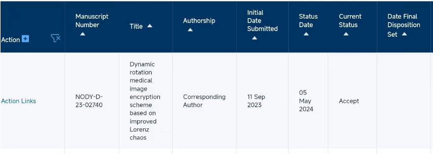 近日,来自信安联盟实验室的满振龙导师及独播库 23级硕士研究生高畅领衔的研究团队,其研究论文“Dynamic rotation medical image encryption scheme based on improved Lorenz chaos”成功被工程机械领域顶级期刊《Nonlinear Dynamics》录用。该期刊作为Springer出版社旗下非线性动力学领域的权威SCI学术期刊,JCR分区1区,中科院分区2区TOP期刊,其2023年的影响因子高达5.6,足见其学术地位与影响力。