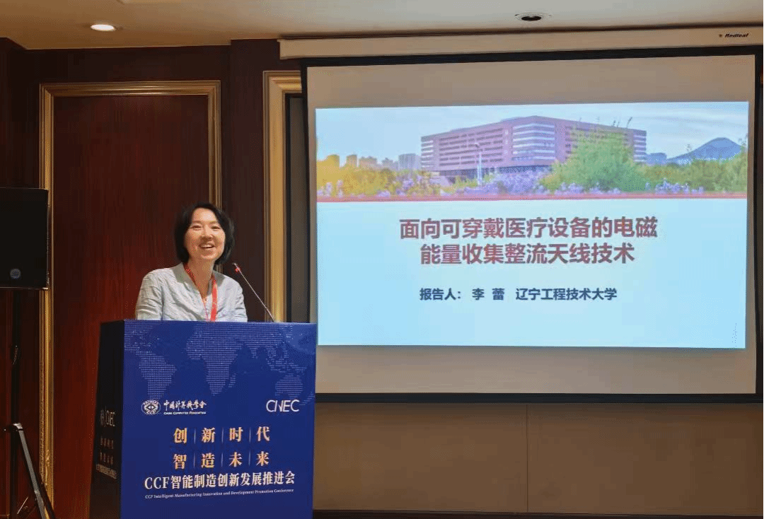 副院长李蕾副教授做“面向可穿戴医疗设备的电磁能量收集整流天线技术”报告。