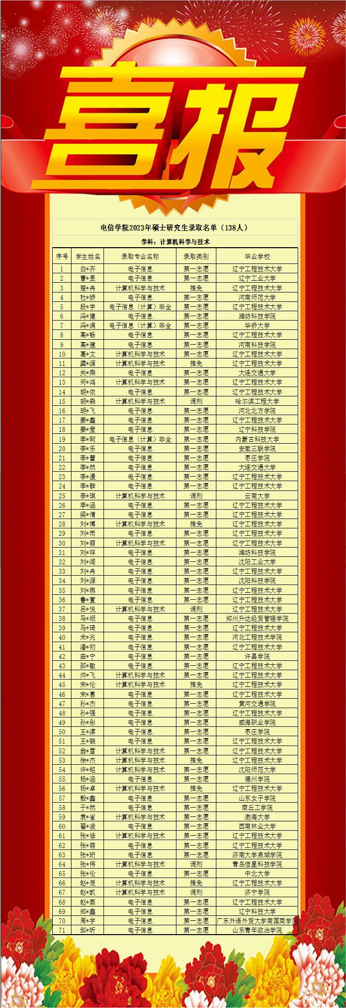 今年整体招生数量与去年(142人)相比持平,生源质量、第一志愿报考数量与第一志愿上线人数有明显提高,其中部分学科上线人数超出计划招生人数,实现了一定比例的差额录取,体现了学院学科的热度和考生对学院的认可度。录取外校考生分别来自于合肥工业大学、哈尔滨工程大学、云南大学、中北大学、沈阳工业大学、天津理工大学、大连交通大学、吉林师范大学、山东农业大学等双一流高校和部分省部重点高校,外校生源质量持续提高。