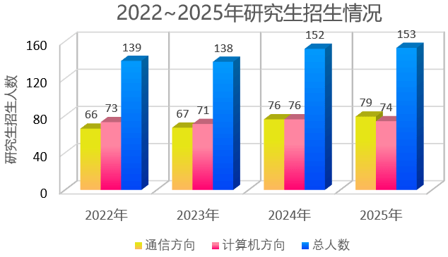 在校研究生招生工作领导小组的统筹协调和相关部门通力配合下,独播库 2025年硕士研究生招生复试工作顺利完成。本次共录取硕士研究生153人(含"退役大学生士兵"专项计划1人),其中通信方向79人、计算机方向74人,招生计划完成率达100%。
