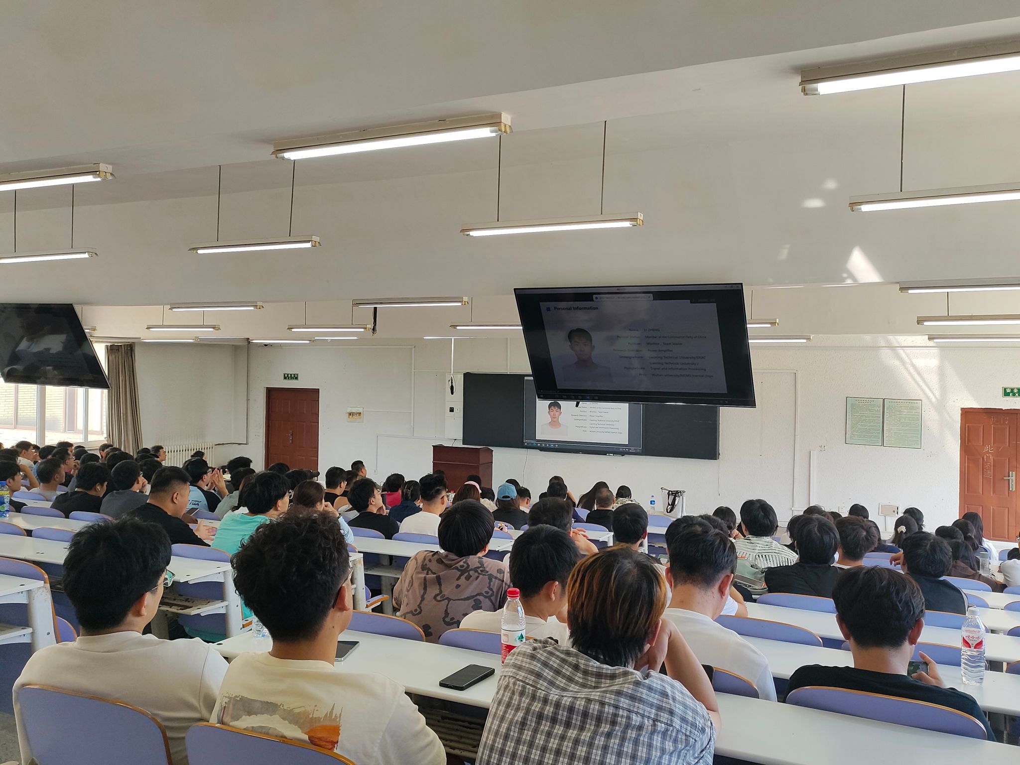 优秀校友、校友理事李政。李政现于武汉大学工业科学研究院攻读工学博士学位,研究方向为mems惯性传感微系统,涉及微纳器件,机械设计,惯性传感,智能制造与控制等多学科领域的前沿交叉融合,他通过线上方式为新生带来了一场“科研时代的引领者”的主题讲座,详细介绍了当下科研的时代背景,阐述了如何在这个快速发展的科技环境中开始自己的科研工作,特别强调了科研的前期准备、实验设计以及数据分析的重要性。他还热情地回答了新生们关于科研工作的各种问题,并分享了申请博士研究生的具体流程和实用建议。他的分享让新生们对科研有了更清晰的认识,并对未来的学术道路充满了期待。