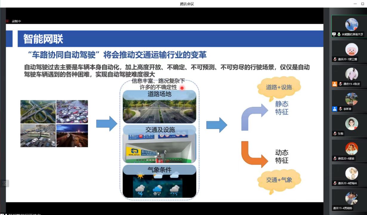 通信工程系策划组织的“2022优秀校友系列报告会”第一场如期展开。本次报告会由通信工程系优秀校友林鲲鹏主讲,主题为“车联网技术进展与应用”。通信工程2019级、2020级全体学生及相关老师通过腾讯会议在线参加了此次报告会。报告会由李新春老师主持。