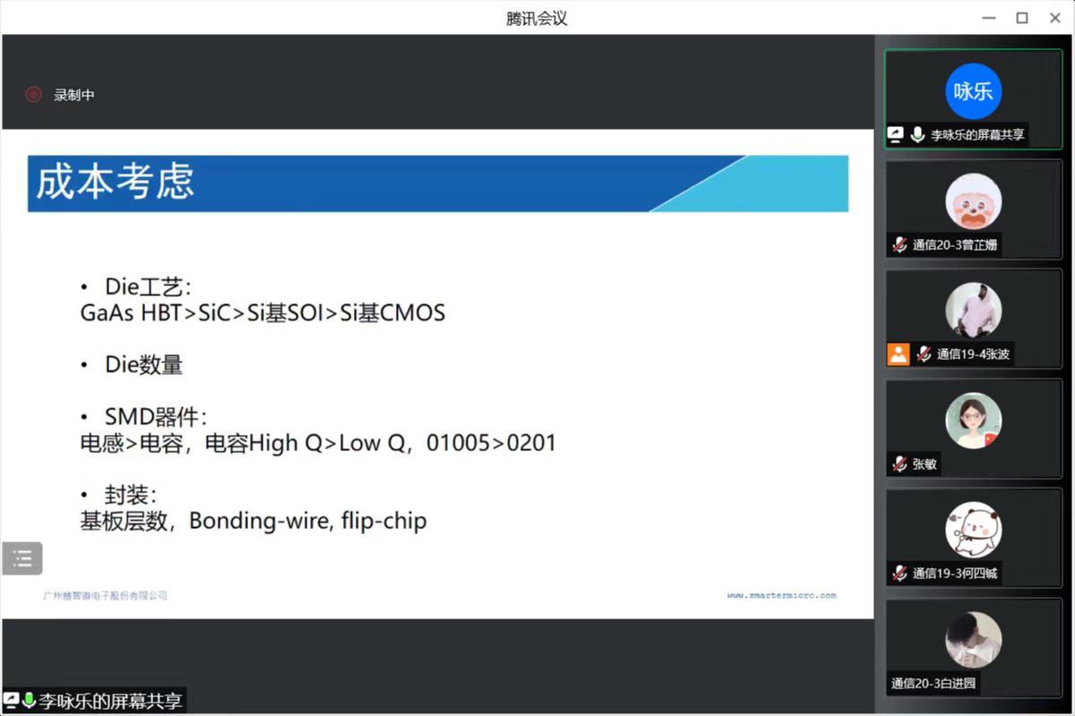 通信工程系策划组织的“2022优秀校友系列报告会”第二场如期进行。本次报告会由通信工程系优秀校友李咏乐主讲,杨顺副教授主持,主题为“移动终端RFIC器件研发简介”。通信工程2019级、2020级全体学生及相关老师通过腾讯会议在线参加了此次报告。