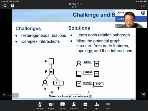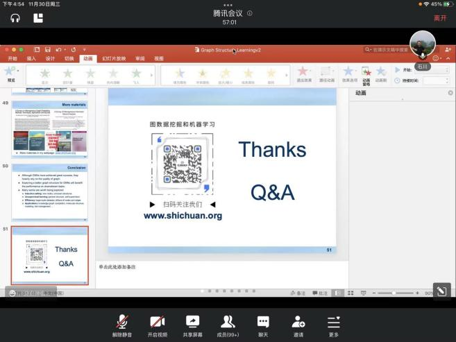 2022年11月30日下午,石川教授为我们开展了题为《图结构学习》的学术讲座,在邢颖副教授的主持下,讲座顺利进行,广大师生积极踊跃的参与学习。