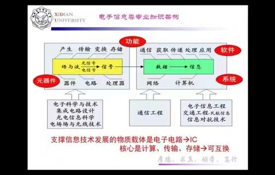 刘教授为我们介绍了科学、技术、工程这三个概念,并从“工程”、“专业”和“通信”三个方面来阐述通信工程专业。工程是一种核心技术或多种核心技术在配套技术的支撑下的一种集成。它为社会和人类提供产品,提供可以服务的装置和平台。专业是指高等学校的一个系里或中等专业学校里,根据科学分工或生产部门的分工把学业分成的门类。通信是按照一致同意的约定传递信息,是人的一种基本需求。此外,刘教授还用类比生物系统的方法介绍了电子信息类专业知识架构,同时阐述了通信的发展历史和人类文明、现代通信新技术、通信的最终目标、通信要解决的问题等。