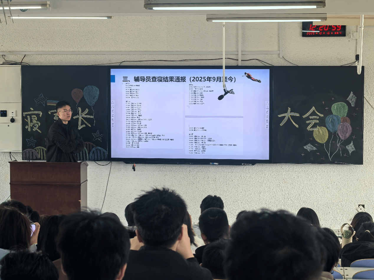 会议伊始,李明洋老师围绕宿舍管理整体工作进行部署,从宿舍卫生、纪律规范、安全保障三大核心维度,清晰界定生活委员及寝室长的岗位职责与工作要求,为后续宿舍管理标准化奠定基础。