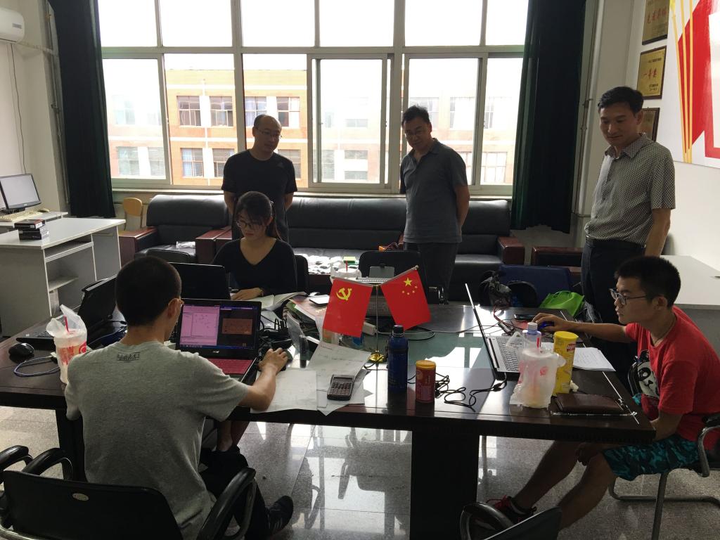 经过校内赛40余只队伍的激烈PK,有5支队伍顺利获得辽宁省电子设计竞赛的入场券。7月20日,辽宁省电子设计竞赛拉开帷幕,电子信息学院党委书记沈学利教授,院长南敬昌教授,党委副书记李玉波副教授,辅导员吴汇辞老师一行来到了位于静远楼423的实训室,看望了暑期留校参加2018年辽宁省TI杯大学生电子设计竞赛的参赛同学和指导老师,并为师生们带来了关心、问候和鼓励。