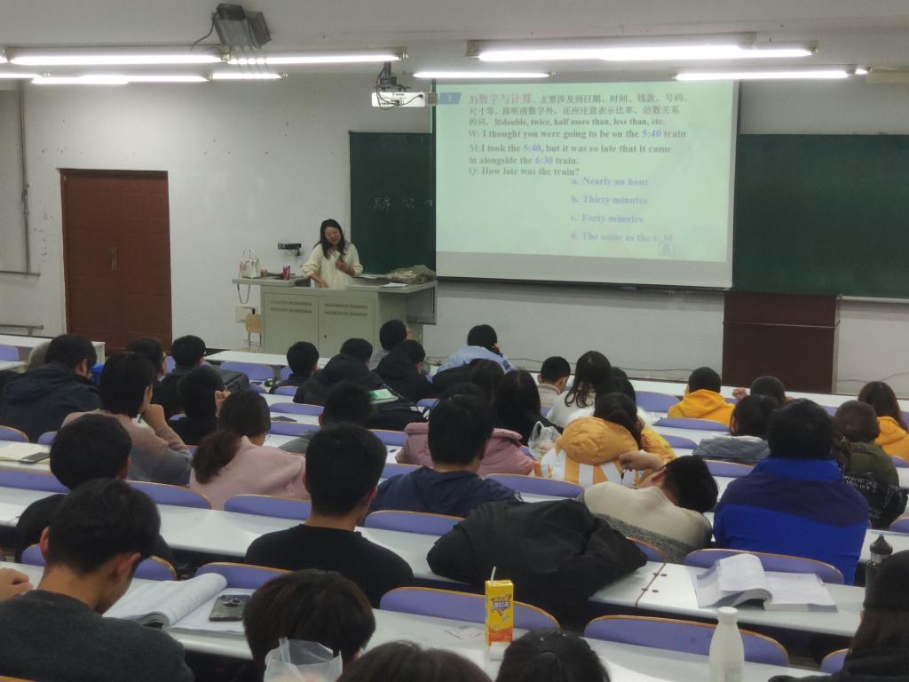 特邀请胡丽娜老师,于静远楼431教室举行了大学英语四级考前冲刺讲座,2017和2018级全体四级备考学生参加。