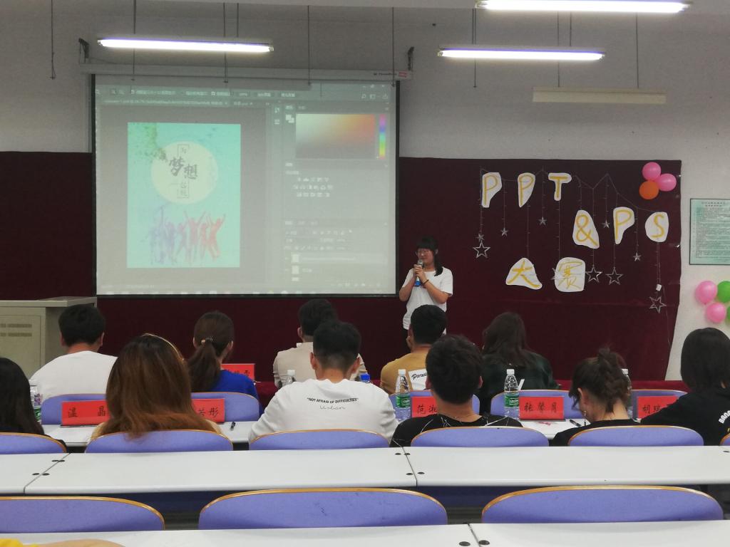 本次比赛以“青春”为主题。在PS设计比赛中,选手们用他们自己的独特情感阐述自己的设计理念。一些看似毫无关联的元素,在他们的精心设计下,结合、变换,迸发出无限的可能性,变得别具一格。他们的作品各有千秋,给观众们带来一场奇幻的视觉盛宴。在PPT比赛中,选手们以演讲的方式为我们介绍了他们的作品,他们的演讲中流露着真情实感,演讲与PPT相结合,青春激昂,振奋人心,一幅幅青春画卷在眼前展开,勾勒出他们青春最美好的时光。艺术邂逅设计,碰撞出精彩的火花。选手们以其独特的作品和激情的介绍,直击观众们的心灵。PS和PPT这些机械化的软件,在选手们的手中变得有温度,有灵魂。