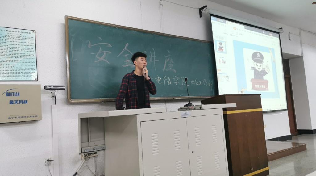 讲座伊始,学工部组织大一新生学习了有关消防安全的知识,为大家普及引发火灾发生的几种情况,并用风趣幽默的语言为新生们再现了诈骗情景,总结诈骗类型,提醒学生要加强对电信诈骗的防范。讲座最后使用视频短片的形式播放了几起盗窃事件的新闻报道,以提醒大一新生注重个人贵重物品的安全,防备校内的盗窃事件。