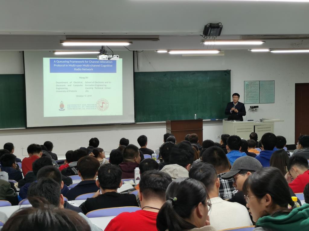 王诗博士(苏尼尔教授博士生)做了“关于基于排队论的认知无线电网络频谱资源分配方法”的报告。现场师生抱以极大兴趣专注听讲,报告精彩之处大家给予热烈掌声。随后,学生们针对报告内容,结合自己的研究方向,纷纷提出问题向两位博士请教进行互动。这些报告让师生了解了认知无线电发展的最新前沿理论与技术,开拓了学术视野,提高了认知水平。