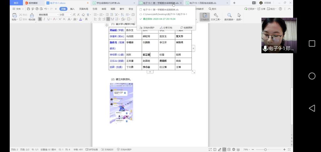 会议伊始,计算19-1班学委乔善鹏进行了学习经验的总结与交流,其他学委也依次对自己班级的学情进行了细致地分析,其中包括班级基本成绩、学习帮扶措施、科研竞赛参与及获奖情况、四六级通过率等方面。在各班学委分享学习经验后,兼职辅导员李政、张铭楊针对科研竞赛参与度、班级学习计划开展的过程验收等方面进行了指导。最后由吴汇辞老师总结本次会议,分析了各班级学业帮扶的特点,强调班级体要团结力量,深刻挖掘班级学风建设的闪光点,将学业帮扶工作形成合力,以期在网课期间提升学业成绩;并希望各班学委在疫情期间增强责任意识,彰显青年担当。