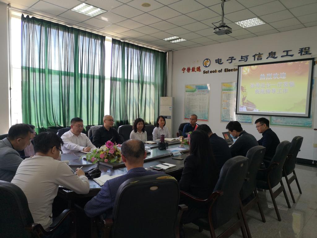 调研指导工作。会议在学院会议室举行,由南敬昌院长主持。副院长孟祥福、高明明、张全贵、王星,电信工程研究所副所长刘玉珍教授、马飞博士,电信工程系张沛泓主任、通信系王诗博士等10余人参会。