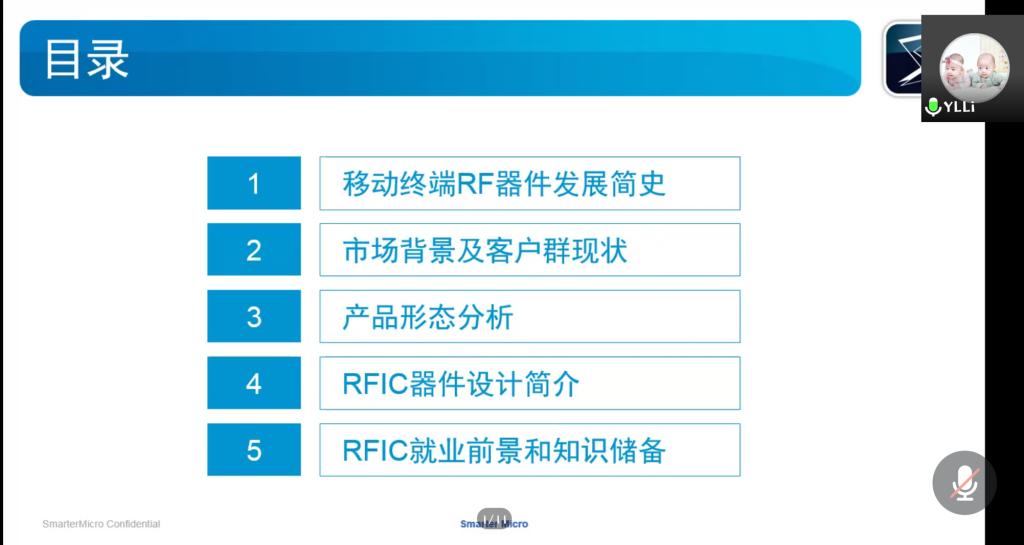 12月1日18:30,李咏乐校友为电信2017级同学做“射频电路与系统”方向交流报告——移动终端RFIC器件简介。