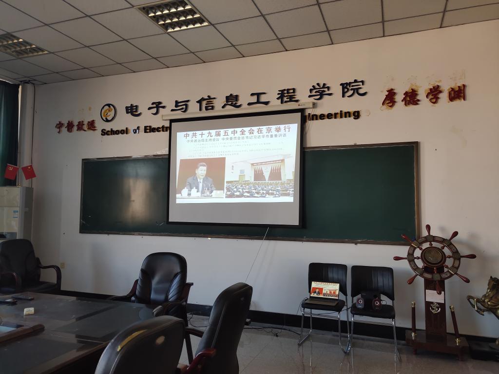 学生党支部组织全体学生党员在学院会议室集中学习党的十九届五中全会精神解读。