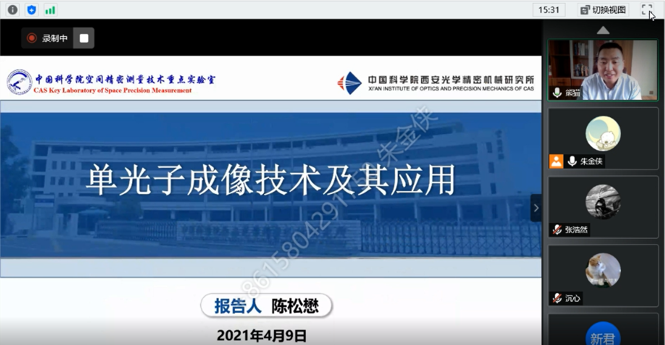 会议室准时举行。本期交流会特邀中国科学院线光学精密机械研究所特别助理陈松懋博士主讲,通过远程会议为学院师生就“单光子成像技术及其应用”做主题报告。
