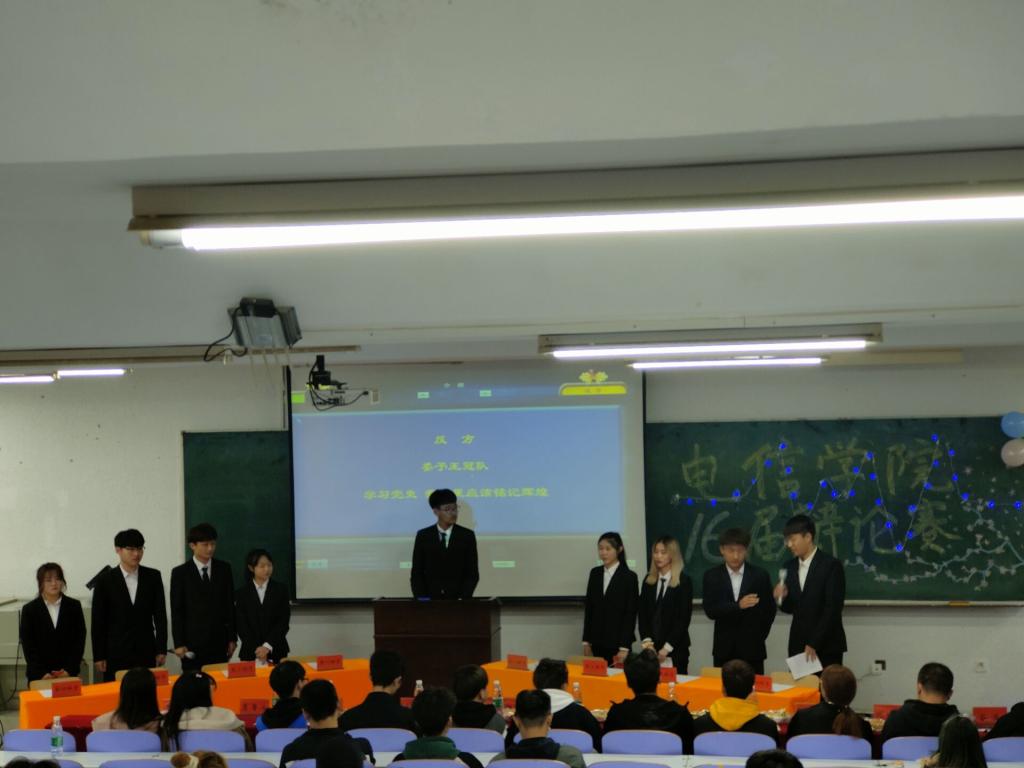 学生会指导教师吴汇辞、学生组织负责人卢建旭、王智议等作为嘉宾。在主持人简短的开场介绍后,双方辩论开始,古有卧龙诸葛舌战群儒,今有群英芸萃慷慨陈词。双方辩手各展其长,正方三辩引经据典,说的对方措手不及。反方三辩对其观点进行了反驳,并清晰的陈述了自己的观点。最后的总结陈词,双方四辩充分展现了辩论的风采,为我们带来精彩的视听盛宴。最终正方队伍“反正你们都不对”队略胜一筹,问鼎本场比赛。韩佳霖同学获得“最佳辩手”称号,吕欣瑶、车博宇、杨鸽等同学获得“风采辩手”称号。