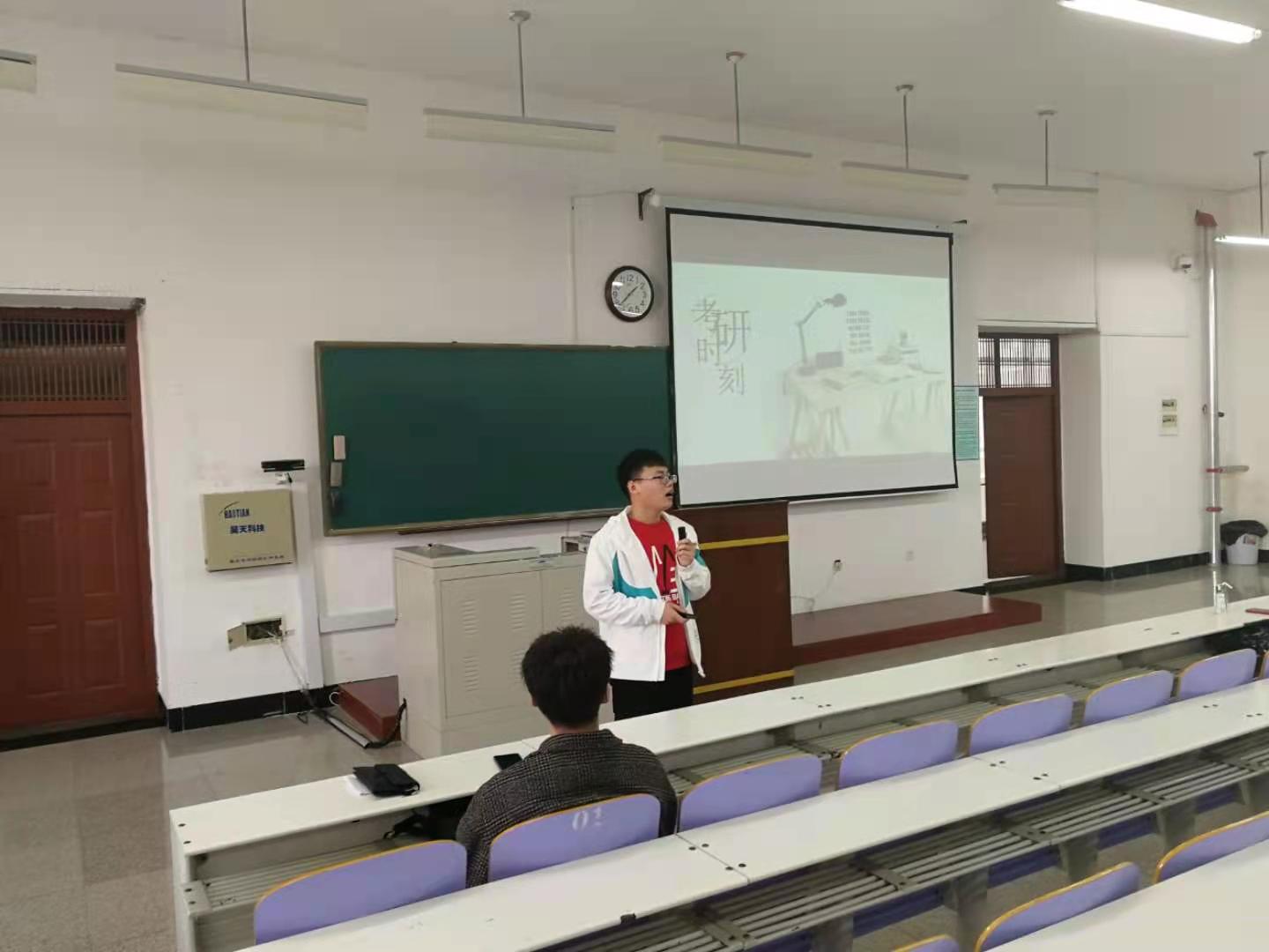 交流会开始,李玉波副书记对本年度考研现状做了简要概括,主要从考研目的、考研内容、考研备考阶段注意事项这三方面向同学们介绍了考研的主要问题。范湘冀和蓝浩通过数据对比分析了近年来报考人数以及辞职考研的人数增多的原因,同时对如何选择报考院校做了详细介绍。赵金源同学结合自身保研经历,向2018级学生介绍了保研相关的硬性指标和加分政策,鼓励同学们从现在做起,提早准备。
