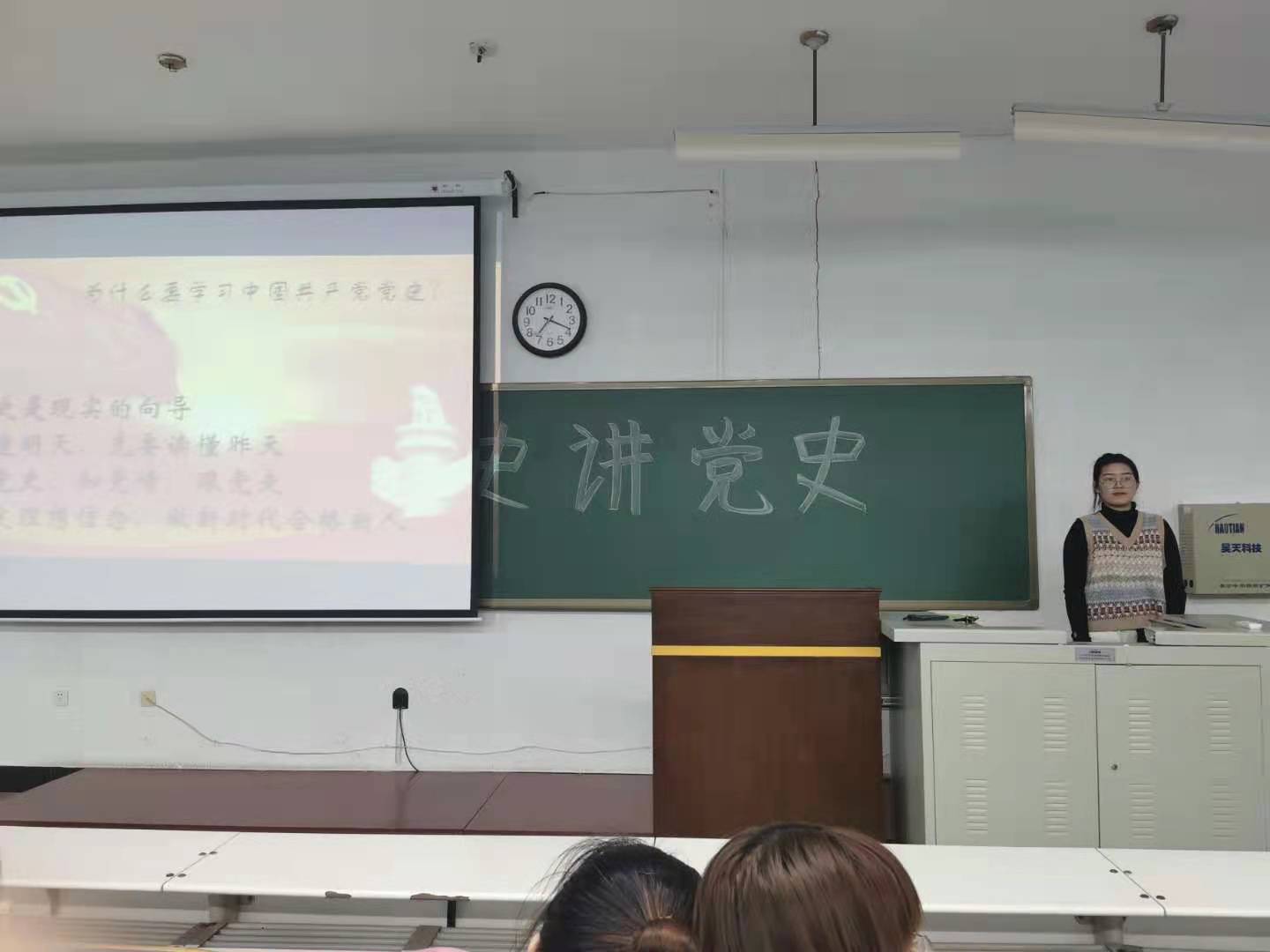 重温党的百年光辉历程,深刻领悟党的初心使命。李佳衡与孙硕男同学详尽叙述梳理了中国共产党百年的发展历程,在场同学也随着他们的讲述一同追溯历史,不断重温中国共产党的初心和使命。归去来兮,斯人已去,长征往矣,精神不灭,刘香江老师细致为同学们讲述了七十年前那漫长的征途以及途中那些催人泪下的故事,令同学们无不感叹长征精神的真谛。吴汇辞老师则讲解了五四运动及其精神内涵,号召处在海晏河清时代的我们,更应继承五四精神,满怀报国之志,为祖国的新一轮发展添砖加瓦。