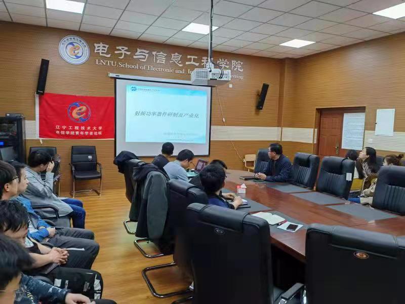 校友丛密芳以及中科院微电子所高级工程师李科,报告题目为《射频功率器件的研制及产业化》。院长南敬昌教授、电子系翟雷应教授、杨文冬校聘教授以及2020级全体硕士研究生参加了本次会议。