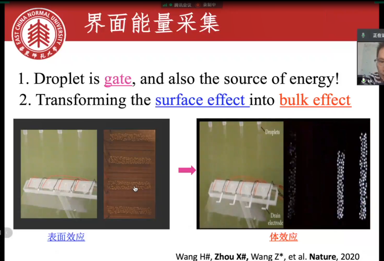 水蕴含着尚未开发的巨大能量,水能已经以各种各样的形式参与在人们的生活中,如化学能、热能、动能等等,拥有着不可估量的应用前景,因此对水能的开发和利用一直是能源领域的重要研究方向之一。近期,一种类晶体管结构的液滴发电机被创新性的设计开发,通过体效应的方式采集了液滴的动能转化为电能。这种液滴发电机的输出性能得到了显著提高水能量的收集转换得到了增强。本次讲座详细的介绍了近期关于体效应发电机的研究进展以及展望。