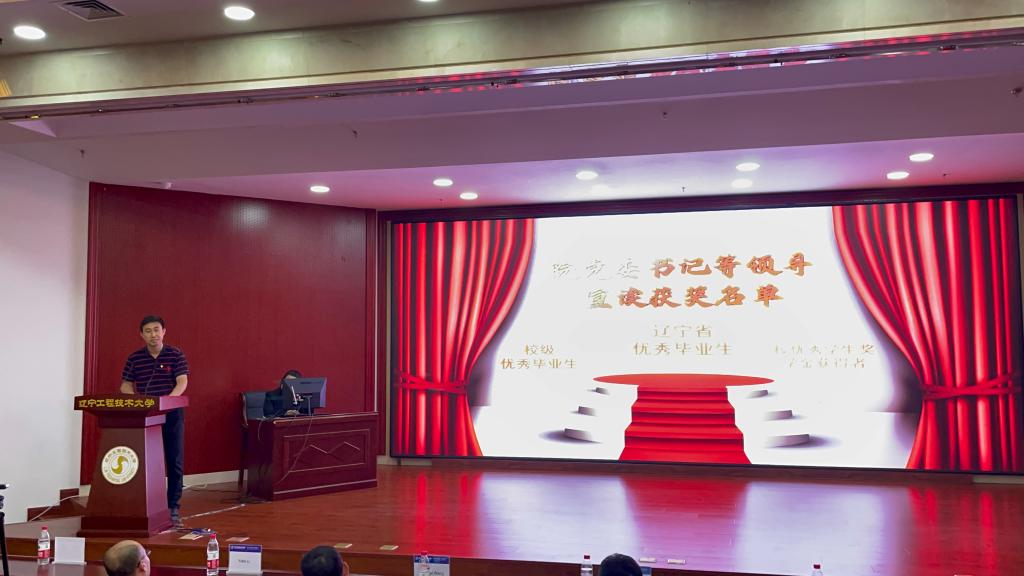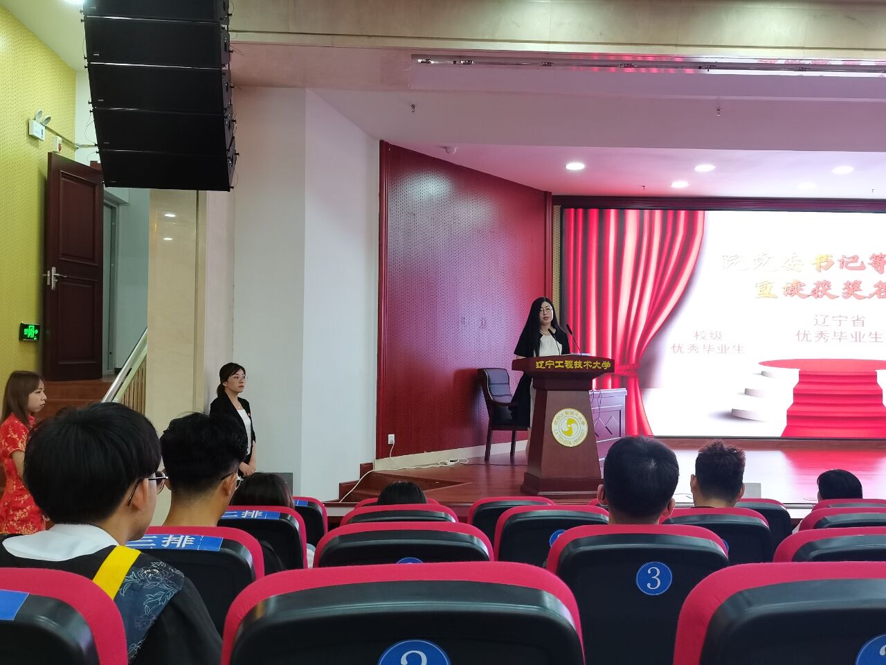 大学时光是一段拼搏与成长的影片,期间涌现出许多优秀的人,先进的集体。院党委书记王永贵宣读了辽宁省级优秀毕业生名单;院党委副书记李玉波书记宣读校级优秀毕业生以及先进班集体名单;孟祥福副院长宣读了校优秀学生奖学金获得者、校三好学生以及优秀学生干部名单;高明明副院长宣读了优秀研究生名单。