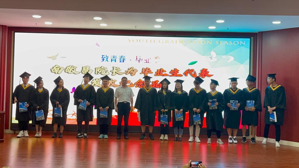 接着,毕业生代表赵金源、刘泓男同学相继发言,他们表达了对学院、对老师的感激与不舍,表示在今后的工作中,努力做到理论与实践相结合,敢于创新,勇于突破,把学院精神发扬光大,并祝愿学院越办越好,再创佳绩。同时南敬昌教授向各班学生代表发放了毕业生纪念品,毕业生代表刘雪峰同学则代表2021届学生为学院献礼,以祝愿学院的明天更美好,母校的明天更加辉煌。