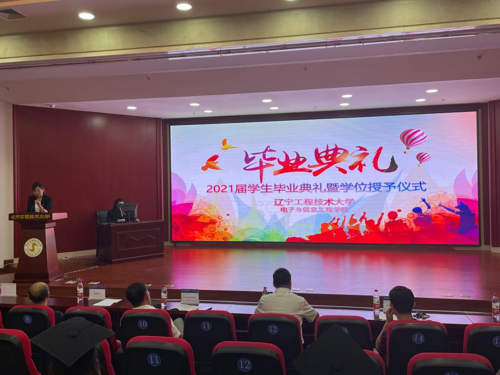 典礼在雄壮的国歌声中拉开了序幕。到场的所有师生首先共同欣赏了毕业生精心制作的毕业视频“毕业纪念册”,视频再现了同学们在辽工大学习生活的点点滴滴,记录了毕业生对母校、对学院、对老师的感恩与祝福。会上南敬昌院长向毕业生致毕业贺词,向学业有成、即将告别母校、踏上新的人生征途的毕业生表示最热烈的祝贺。同时,他向毕业生们提出了新的希冀:希望毕业生们尽快适应新工作、新环境,把毕业看做新的起点,继续学习,增强能力,希望每位即将踏出校门的学子牢记母校的培养之恩,铭记老师的教导之情,为社会多做贡献,成为母校的骄傲、学院的自豪。