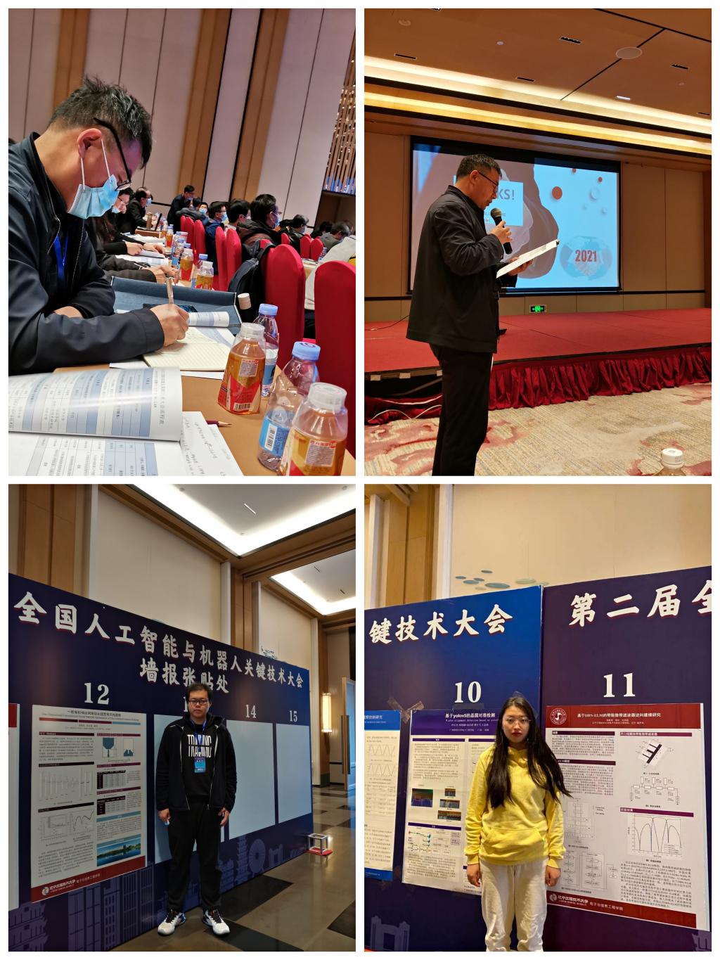除了聆听各位专家学者的报告,参会人员还认真观看了各企业带来的先进机器人技术和产品。“无线通信电路与系统”射频微波研究室的研究生谢欢和杜有益分别投稿了论文《基于DBN-ELM的带阻微带滤波器逆向建模研究》《一维卷积神经网络优化超宽带天线建模》并被录用,在墙报展示板区与其他感兴趣的高校研究生进行愉快的交流。