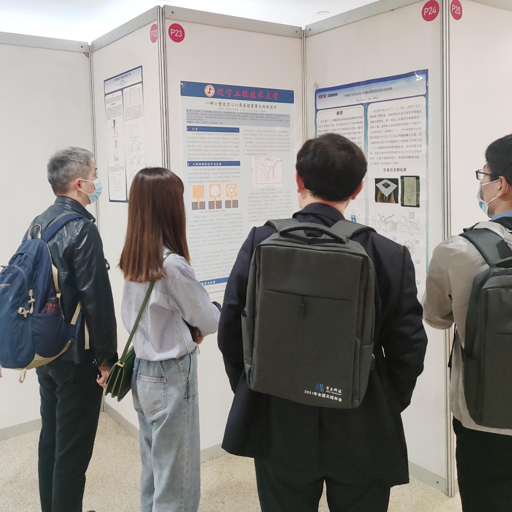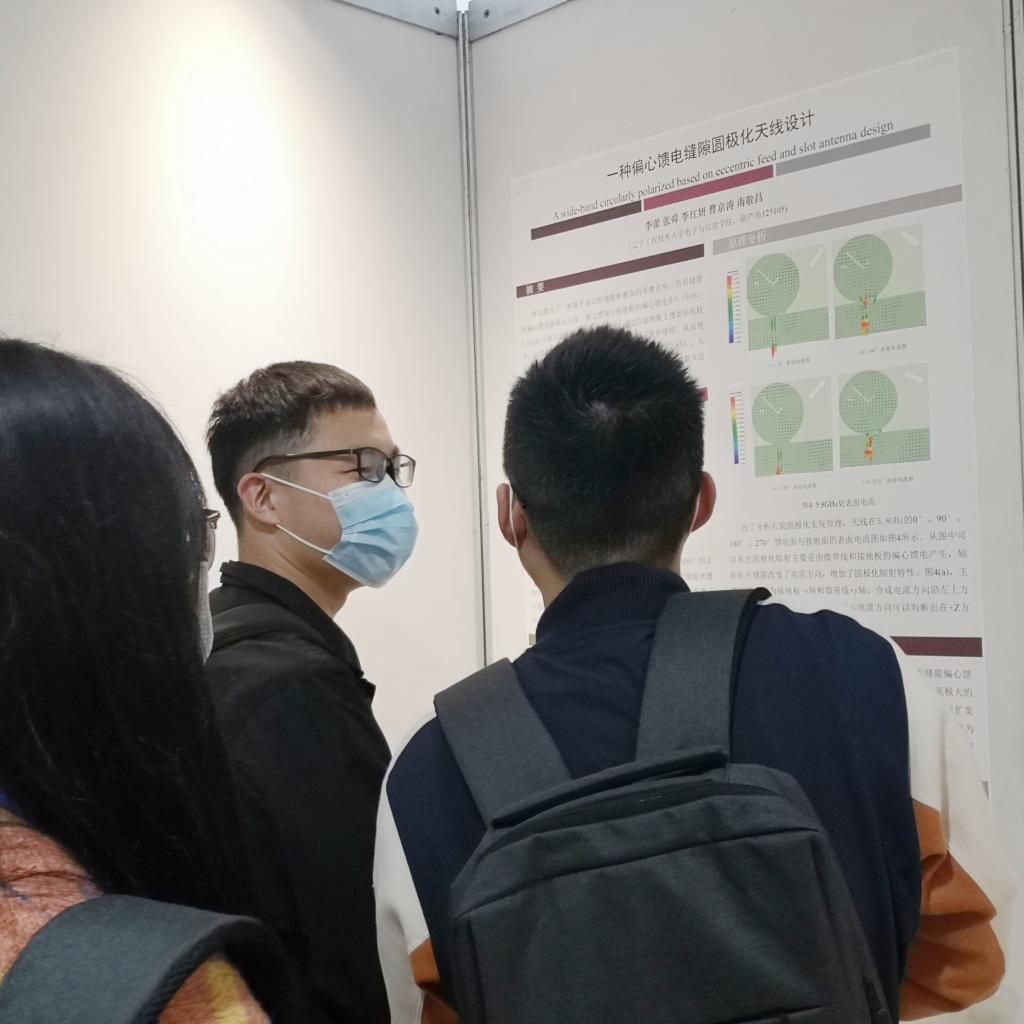 25日下午至26日,大会分组讨论分别在多个分会场同时进行,李蕾老师与5名参会同学认真听取了分会场的报告,详细记录了报告内容,并积极参与提问讨论。同时,参会同学也在会上以多种形式展示、汇报了自己的研究成果。25日下午,张舜、韩欣欣、王纪禹三位同学分别将发表论文《一种偏心馈电缝隙圆极化天线的设计》、《一种小型化空心六角星超宽带天线的设计》、《一种双陷波超宽带MIMO天线的设计》以海报形式展出。26日上午,曹京涛同学在“面向5G/6G应用的新型微波/毫米波天线”分论坛上作报告,题目为《一种应用于5G毫米波部分频段的平面宽带端射MIMO天线》。在展出、汇报过程中,同学们与其他科研人员就研究问题展开了积极探讨。通过交流探讨,同学们加深了对知识的理解,增进了同领域之间的技术交流,参会师生均受益匪浅。
