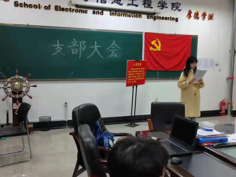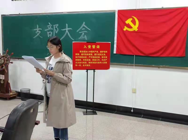 会上,每一位新发展的同学认真宣读入党志愿书,入党介绍人和党员们发表意见,正式党员对发展对象逐一进行投票表决,最终讨论通过了这53名同学的入党决议。最后,学院组织员、学生第二党支部书记叶静老师做了总结动员讲话,她首先对新加入党组织的各位同学表示祝贺,同时也提出了几点要求。第一,要始终树立牢固的理想信念,坚定不移的跟党走,要用实际行动践行一名共产党员的初心和使命。第二,要始终遵守党章党纪,严格要求自己,时刻以优秀党员的标准规范自己的言行。第三,要始终坚持全心全意为人民服务的宗旨,将自己的青春献给祖国,以实现中华民族伟大复兴为己任,坚定目标,努力奋斗。
