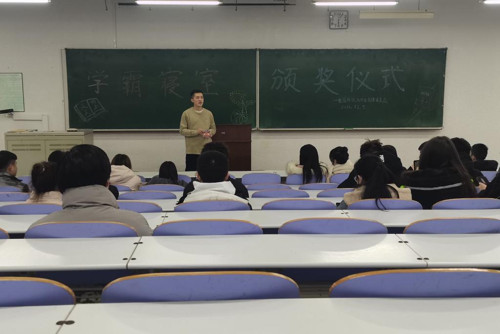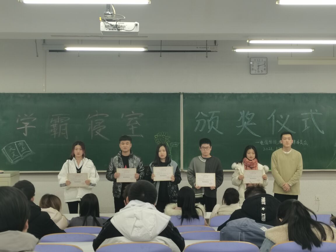 有17间寝室获得校级“学霸寝室”荣誉称号,21间寝室获得院级“学霸寝室”称号。学院于2021年12月5日晚六点在静远228举行学霸寝室授牌仪式,学院辅导员刘香江老师莅临本次颁奖活动。