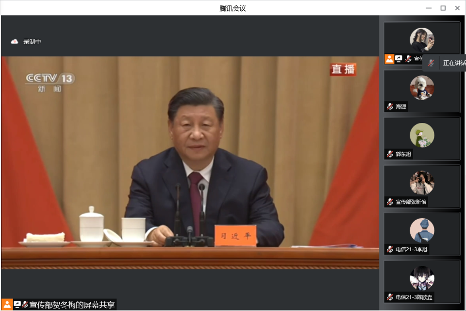 团委于上午十点在腾讯会议开启线上会议,组织学院全体同学观看,认真学习习近平总书记在大会上的重要讲话精神。