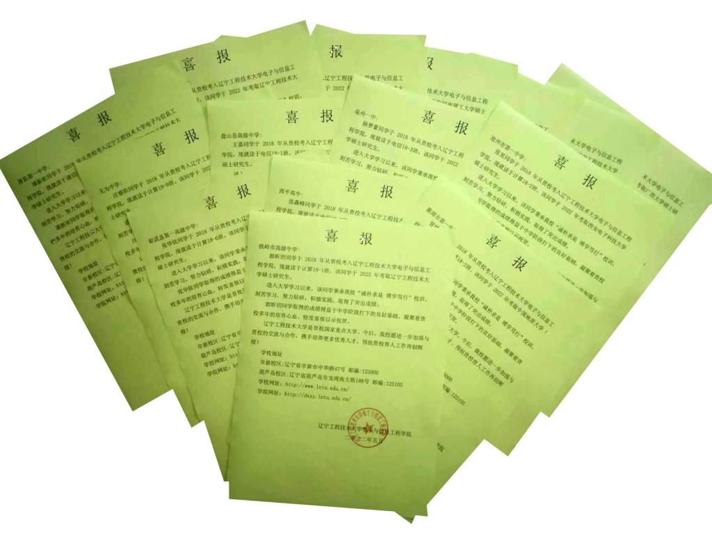 在全院师生的共同努力下,独播库 2022届本科生毕业生中有115名同学成功考取硕士研究生。考研学生中有73名同学选择继续留在辽宁工大读研,占升学人数的63.48%。23名免试推研学生中15名报考本校,占比65.21%。42名同学通过2022年全国硕士研究生招生考试被复旦大学、中山大学、电子科技大学、中国农业大学、北京工业大学、吉林大学、东北大学等知名高校录取。