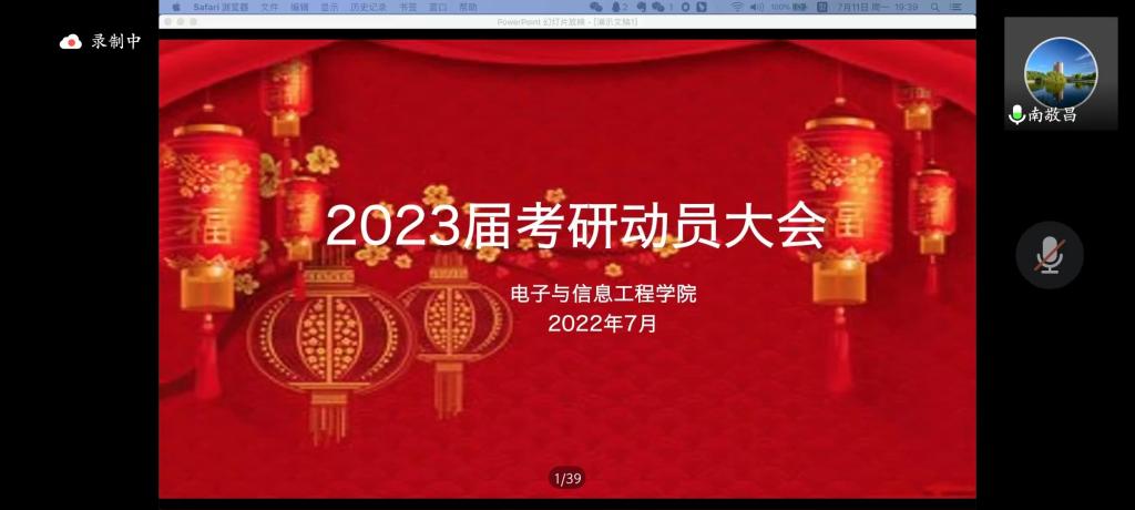 于2022年7月11日晚上19:30,召开了2019级学生考研动员会。南敬昌院长主讲,张洋老师主持,19级与20级全体班干部及有考研意向学生共350人参会。由于疫情原因,本次大会于线上召开。