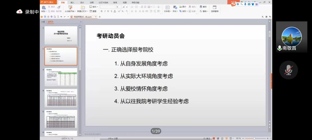 南院长建议大家,考研最重要的工作之一是能够从个人发展、自身实际、爱校情怀及往届考研学生经验等各方面综合考虑,正确选择报考院校,并一战成硕,获得成功,不能好高骛远,不切实际,同时也勉励大家,做好考研规划,高效利用时间,考出好的成绩,为学院的读研深造率和就业率提升做出贡献。在考研还是就业的选择方面,南院长不建议考研失败后的同学一味继续准备“二战”,而是要求他们先就业,边工作边考研,积累实践能力和工作履历,这对考研成功会更有帮助。希望同学们不仅要抓住考研机会,更要去接触更广阔的平台,开阔自己的眼界,不断提高专业水平,为自身未来发展提供保障。