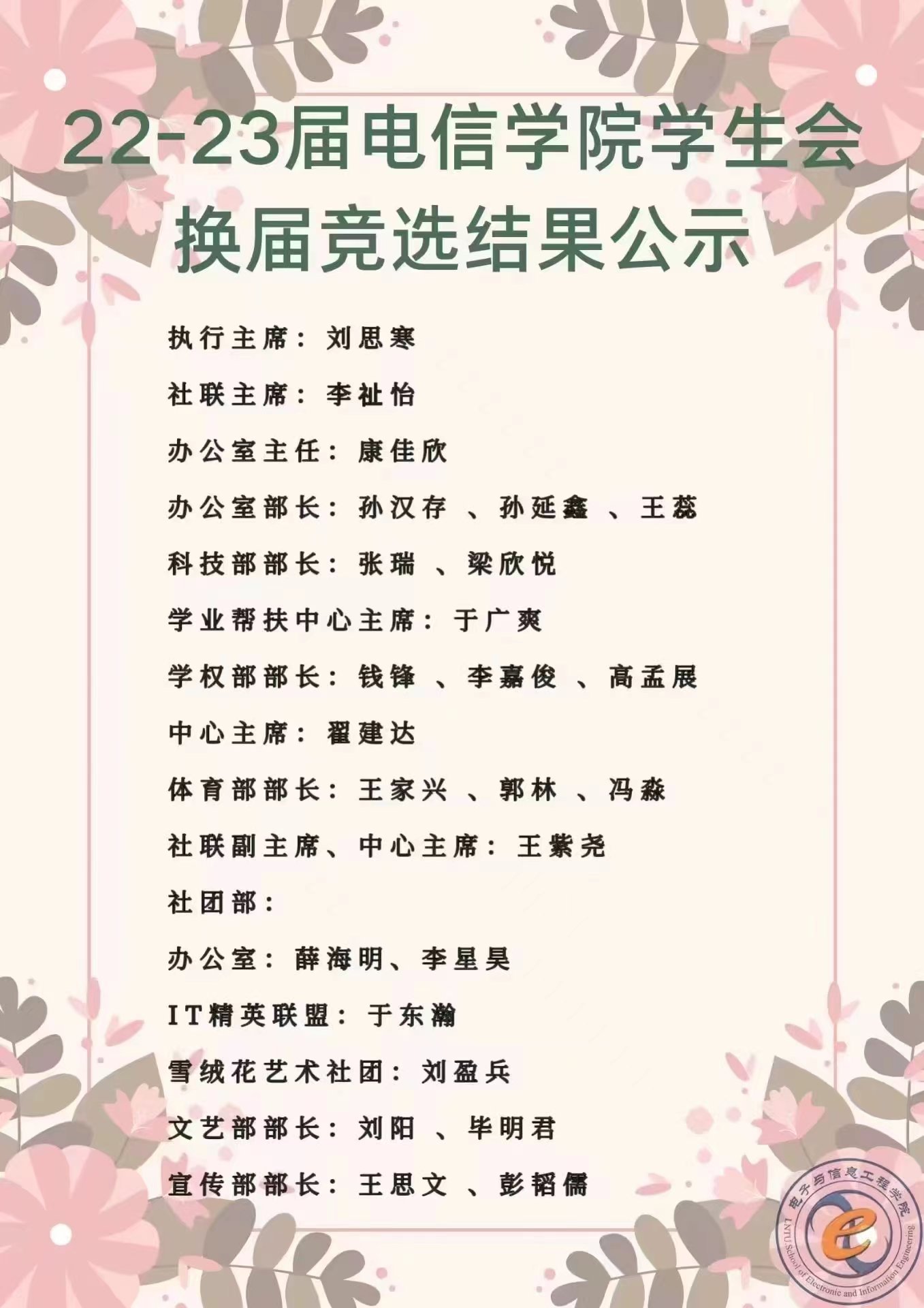 这次学生会换届选举的顺利举行为学院学生会注入了新的活力,进一步调动了大家的工作积极性。新一届学生会成员将扎扎实实开展工作,用行动证明自己的能力,用行动为学生会添彩。