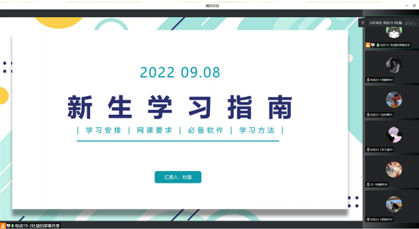 各位副班导师首先为新生介绍了作息时间,让大家合理的安排学习和休息时间,提高课堂效率,并对新生线上网课提出了具体要求:要求大家按时上课,课前及时改好备注便于老师提问统计人数等,遵守课堂秩序,积极参加课堂互动并按时上交作业。然后对上课所需的软件,如腾讯会议、钉钉、雨课堂等的使用方法进行了详细的讲解,并对同学们提出的问题进行了耐心的解答。最后,为同学们居家学习期间的安全和如何避免焦虑提出了一些建议。