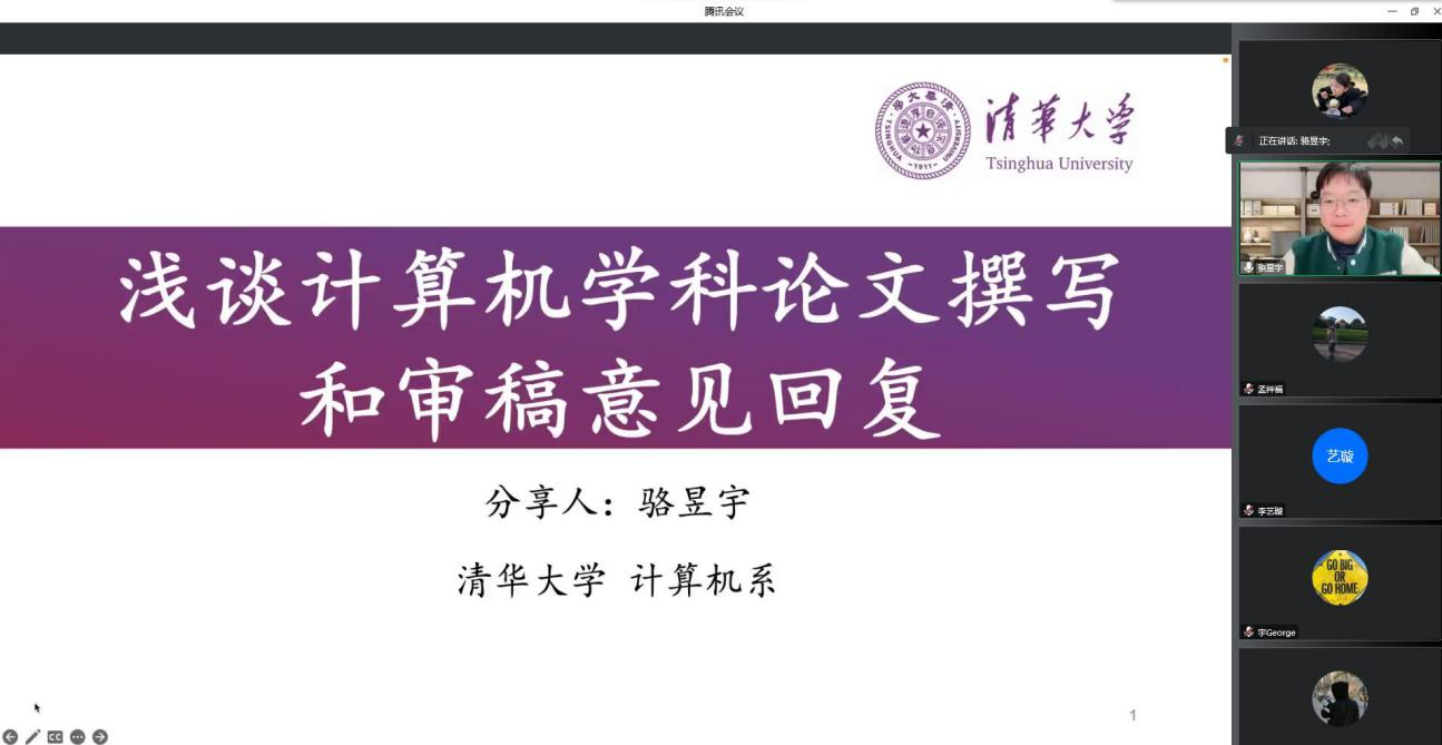 本次讲座,昱宇博士向我们简要介绍了计算机学科的学术论文撰写要点,结合自身经验与实验成果,理论联系实际,首先对于论文的摘要、引言、框架、技术部分、实验和结论部分进行了阐述,接着介绍了如何站在读者的角度写论文以及论文撰写、排版等技巧,并多角度对论文进行分析与概括。除此之外,昱宇博士还想大家介绍了如何进行审稿意见回复的相关内容,昱宇博士指出论文审稿被拒是很常见的事情,但是我们需要及时调整心态,对于被指出的问题要进行及时修改与调整,并且与大家分享了一些回复审稿人的模板和基本原则,供大家参考和借鉴。讲座最后,昱宇博士与参加会议的老师和同学就相关问题进行了深入的讨论,与会人员从中受益匪浅,反响很好。