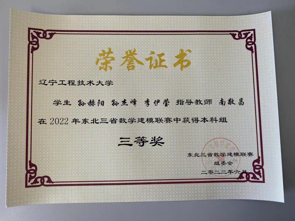 2.孙赫阳、孙杰峰、李伊莹团队荣获2022年东北三省数学建模联赛三等奖(指导老师:南敬昌);