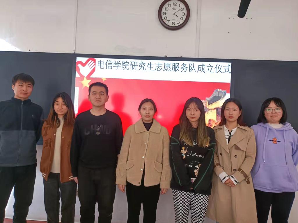 电信研究生志愿服务队致力于增强志愿者们的服务意识,充实其业余生活,同时也为志愿者实现社会服务、传递爱心、传播文明提供良好的平台。成立志愿服务队旨在把服务社会和德育育人有机地结合起来,帮助和引导全院学生成为有道德、有文化、有纪律的社会主义接班人。