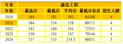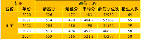 通信工程专业在辽宁省招生情况统计