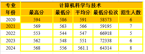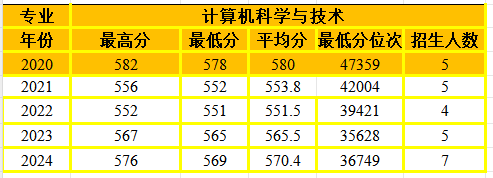 计算机科学与技术专业在河南省招生情况统计