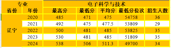 电子科学与技术专业在辽宁省招生情况统计
