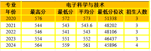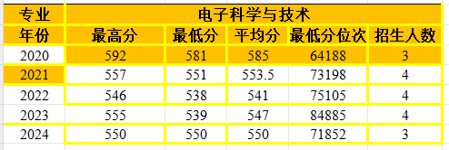 电子科学与技术专业在河南省招生情况统计