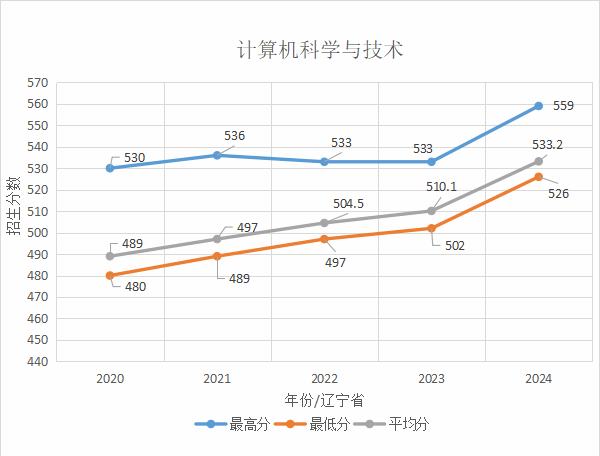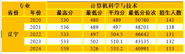 计算机科学与技术专业在辽宁省招生情况统计