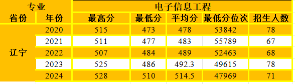 电子信息工程专业在辽宁省招生情况统计