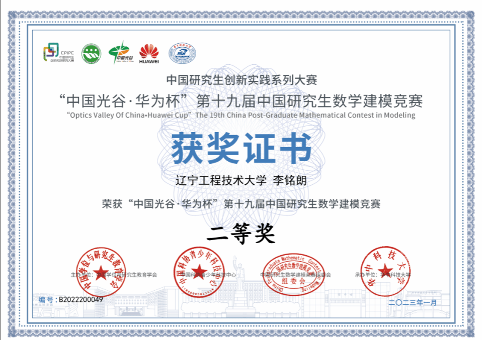 第十九届“华为杯”全国研究生数学建模竞赛 国家级二等奖